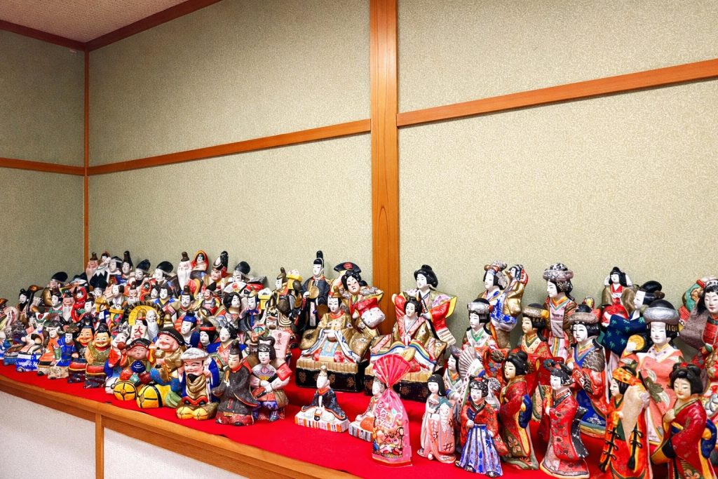 道の駅は和室とレストラン、手づくりの店は2階に、地元に伝わる土雛約300点を展示。